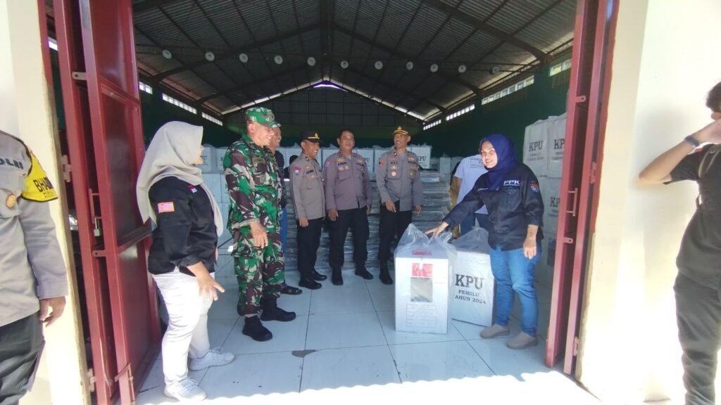 Banyumanik, Semarang ,,PATROLI86.COM,, Forkompimcam Banyumanik pengecekan langsung di gudang PPK Kecamatan Banyumanik dalam rangka pengamanan pendistribusian logistik pemilu ke PPS 11 Kelurahan se Kecamatan Banyumanik di Gudang PPK Jl. Prof Soedarto Kelurahan Sumurboto Kecamatan Banyumanik Kota Semarang. Senin (12/02)