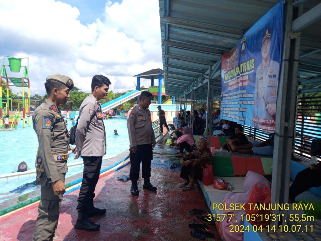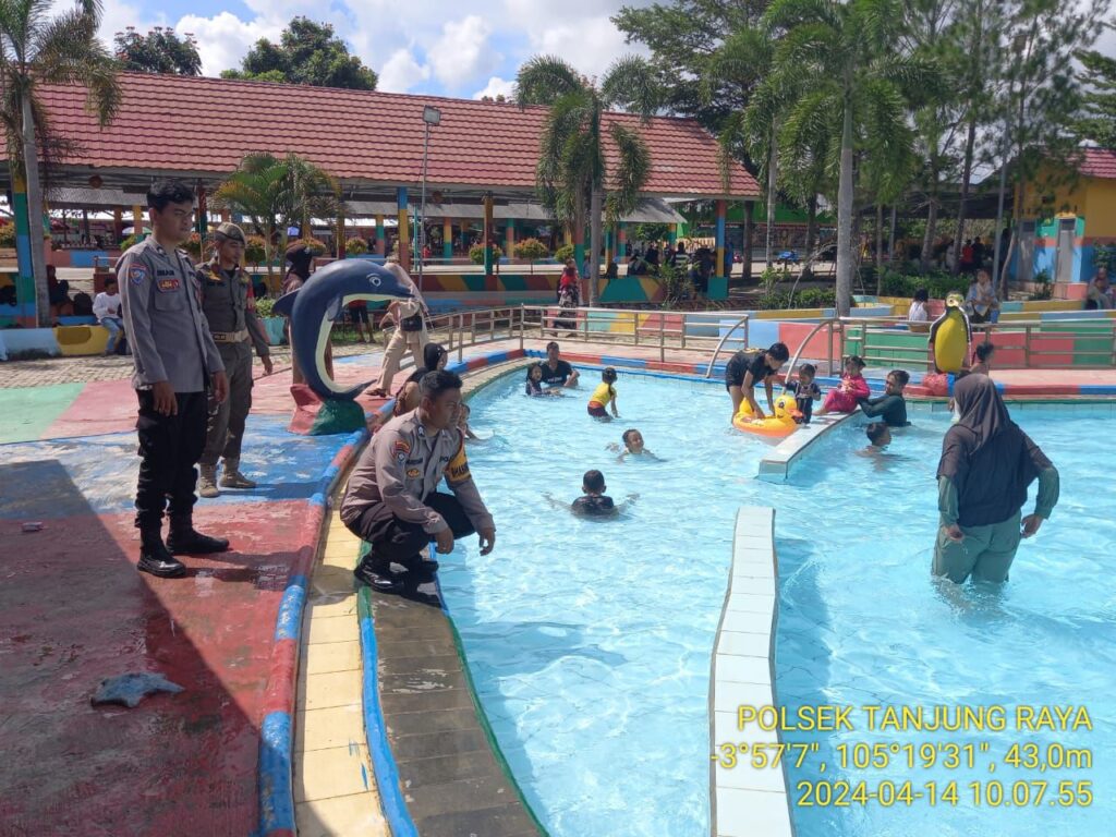 Jajaran Polsek Tanjung Raya Polres Mesuji Polda Lampung, melaksanakan monitoring dan pengamanan kepada para pengunjung yang berlibur ditempat wisata Taman Keanekaragam Hayati, Desa Mekar Jaya, Kecamatan Tanjung Raya, Kabupaten Mesuji. Minggu (14/04/24)