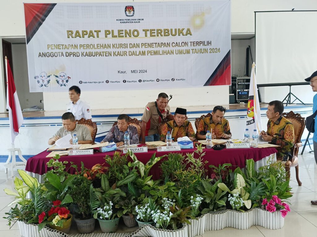 Kaur,//PATROLI 86 COM-//Kamis 2 Mei 2024, KPUD Kaur melalui rapat pleno terbuka bertempat di Gedung Serba Guna ( GSG ) menetapkan Anggota DPRD Hasil Pemilu Dewan Perwakilan Rakyat Daerah Kabupaten Kaur tahun 2024.