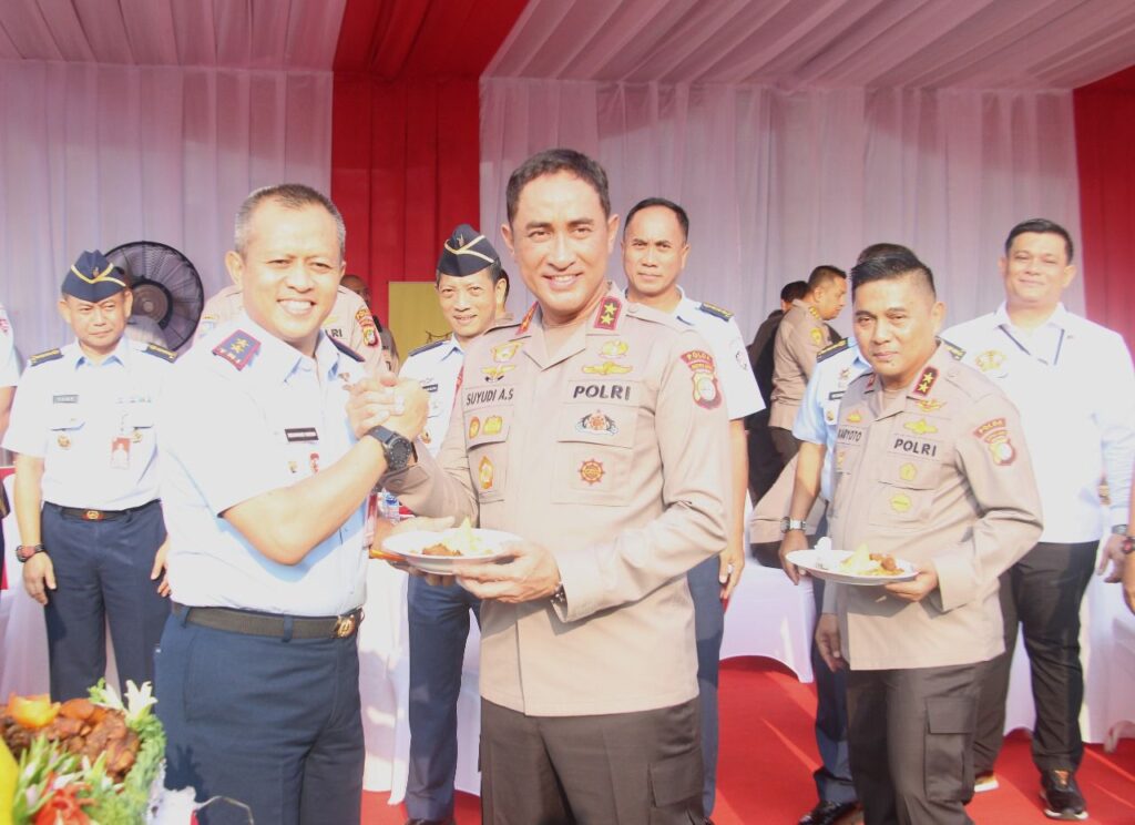 [ JAKARTA ] – patroli86.com – Panglima Komando Operasi Udara I Marsekal Muda TNI Mohammad Nurdin memberikan surprise berupa tumpeng dalam rangka peringatan HUT ke-78 Bhayangkara usai pelaksanaan upacara kenaikan pangkat anggota Polri dengan Irup Kapolda Metro Jaya Irjen Pol Karyoto, S.I.K. yang berlangsung di Lapangan Mapolda Metro Jaya.