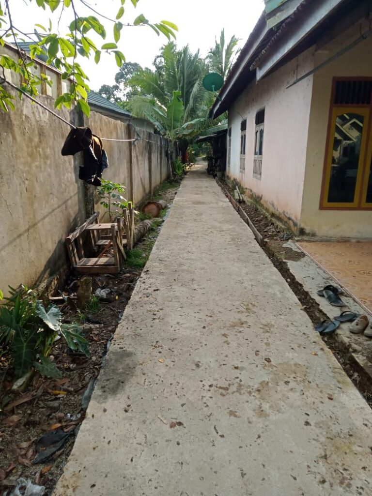 Jambi — patroli86.com — Desa Betung dikecamatan Kumpeh Ilir, Kabupaten Muaro Jambi, Provinsi Jambi, pada tahun anggaran 2024 dari DD membangun jalan usaha tani di RT 07/03 sepanjang 266 meter, dengan lebar 1.5 meter saja.