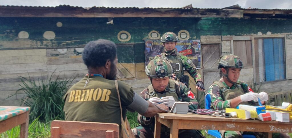 [ PAPUA TENGAH ] – patroli86.com ,, Satgas Mobile Yonif 323 Buaya Putih Pos Sinak, menggelar pelayanan kesehatan gratis bagi masyarakat yang tinggal di pedalaman Papua, tepatnya di kampung Gigobak, Distrik Sinak, Kabupaten Puncak, Provinsi Papua Tengah, Kamis (25/07/2024).