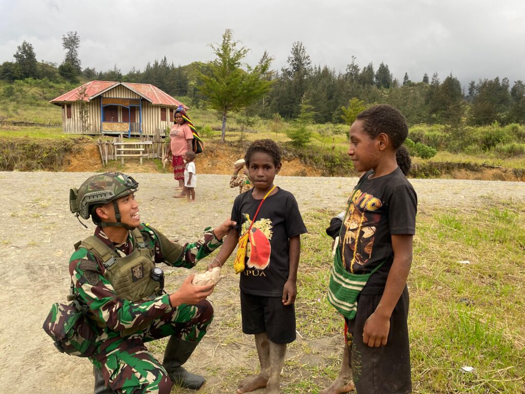 [ GOME ] – patroli86.com – Satgas Mobile Yonif 323 Buaya Putih, terus menjalin kebersamaan antara personel Pos Gome dengan Masyarakat melalui kegiatan Minggu kasih dengan membagikan makanan Kepada masyarakat Papua di Kp Jenggernok, Distrik Ilaga, Kabupaten Puncak, Papua Tengah. Minggu (04/08/2024).