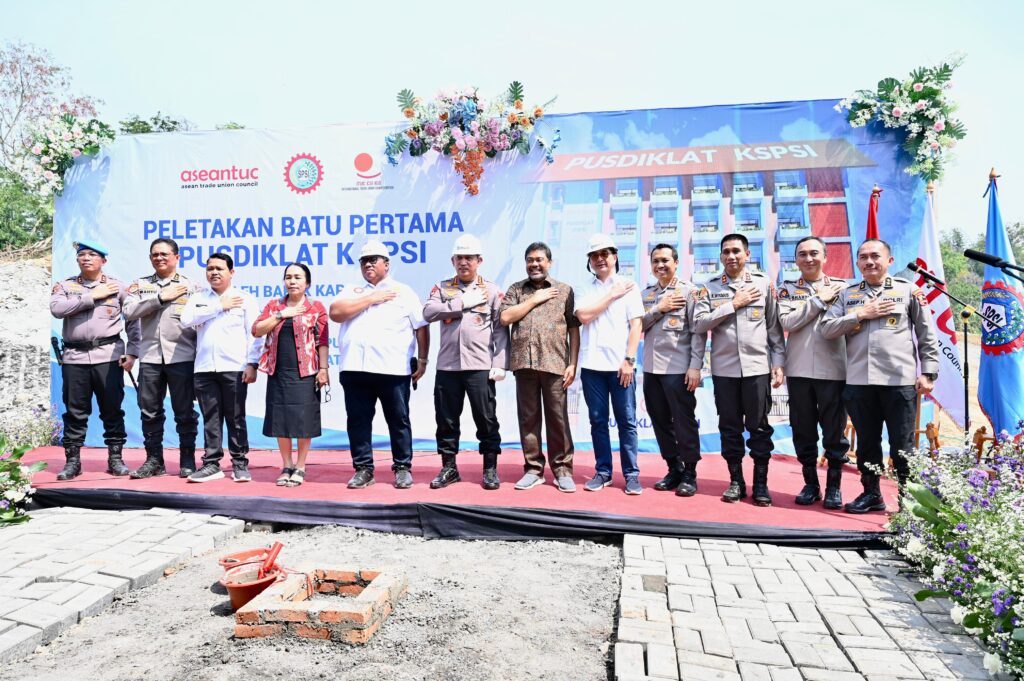 Purwakarta,, patroli86.com,, Kapolri Jenderal Polisi Drs. Listyo Sigit Prabowo, M.Si melaksanakan kegiatan peletakan batu pertama pembangunan gedung Pusdiklat Konfederasi Serikat Pekerja Seluruh Asean Trade Union Council (KSPSI ATUC) di Jln. Raya Waduk Jatiluhur Kp. Sukahurip RT 008 RW 005 Desa Jatiluhur Kec. Jatiluhur Kab. Purwakarta. Rabu (7/08/2024).