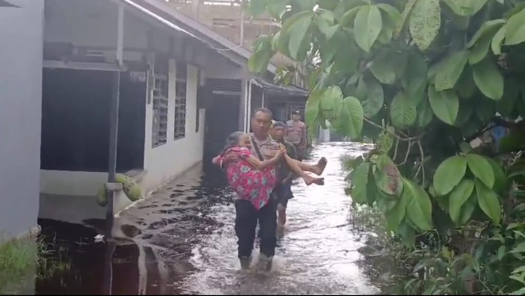 SINGKAWANG –kalbar, patroli 86.com. Hujan deras yang mengguyur wilayah Kelurahan Condong, Kecamatan Singkawang Tengah, mengakibatkan banjir yang memaksa warga untuk mengungsi ke tempat yang lebih aman. Di tengah situasi darurat ini, petugas Bhabinkamtibmas Kelurahan Condong Aipda Harri Suryanto, bersama KSPK Regu 2, Aipda Nasrullah, dan anggota jaga lainnya, turun langsung membantu proses evakuasi korban banjir pada Jumat pagi (24/1/2025).