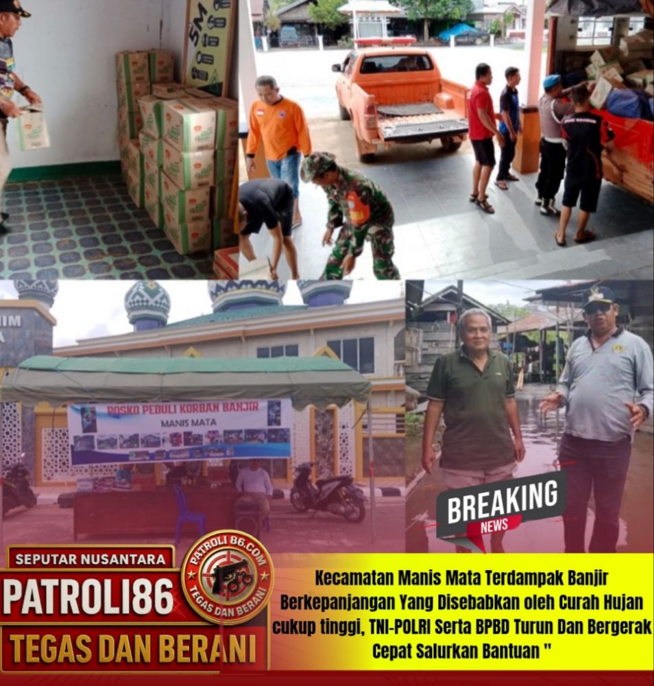 “Menanggapi situasi darurat ini,tim personil gabungan TNI-Polsek manis mata,dan BPDB ( Badan Penaggulangan Bencana Daerah) kabupaten ketapang segera bergerak cepat.dengan mengunakan truk dan perahu karek, tim gabungan pun terjun menembus genangan air untuk menyalurkan bantuan kepada warga yang terendam banjir berupa sembako beras, mie instan dll untuk warga yang masih bertahan di wilayah terdampak banjir.