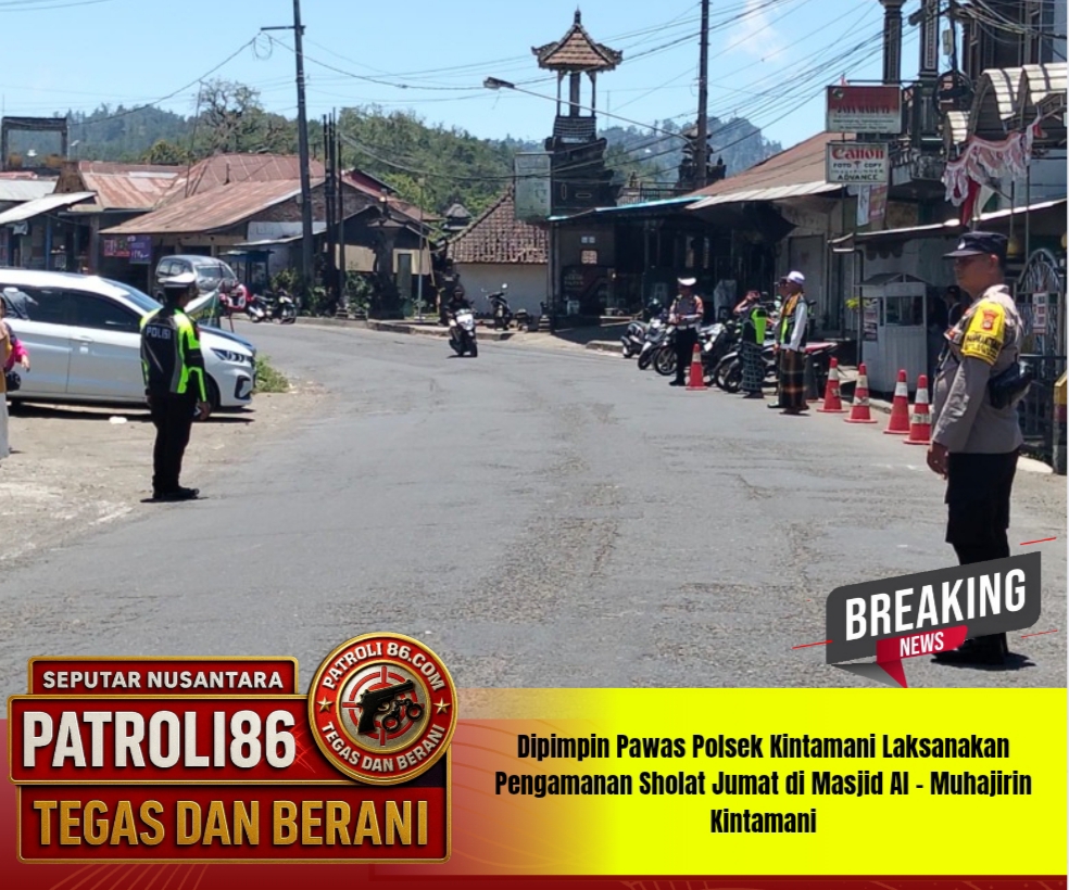 Polda Bali – patroli86.com ,, Polres Bangli – Polsek Kintamani. Demi terciptanya situasi yang aman dan nyaman serta tidak terjadinya hal – hal yang tidak diinginkan di wilayah hukum Polsek Kintamani, sehingga Personil Polsek Kintamani Dipimpin Pawas Iptu I Nengah Bagiawan Bersama Anggota melaksanakan giat pengamanan Sholat Jumat di Masjid Besar Al- Muhajirin Kintamani. Jumat, (24/10/2025).