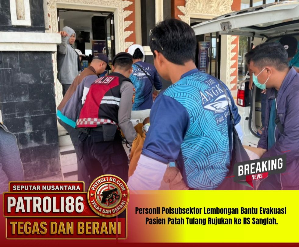 Nusa Penida – patroli86.com ,, Kepedulian dan kehadiran Polri di tengah masyarakat kembali tampak dalam kegiatan kemanusiaan yang dilakukan personel Polsubsektor Sampalan, Minggu (26/10/2025) pagi. Personel terlihat turut membantu proses evakuasi pasien RSUD Gema Santi yang mengalami patah tulang dan akan dirujuk ke RSUD Sanglah, Denpasar.