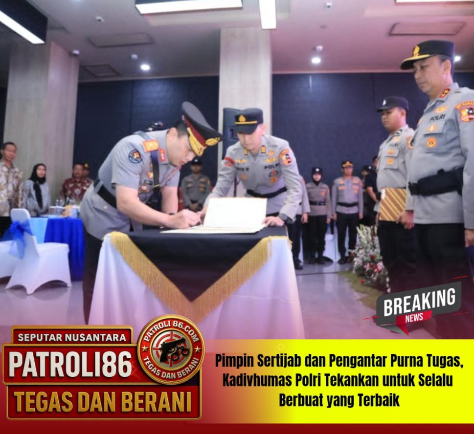 Jakarta, — patroli86.com ,, Divisi Humas Polri menggelar acara Serah Terima Jabatan (Sertijab) Karo Multimedia serta pengantar purna bakti bagi sejumlah personel, bertempat di Aula Rastra Sewakottama Gedung Divhumas Polri, Kamis (6/11/2025). Acara berlangsung khidmat dan penuh kehangatan, dipimpin langsung oleh Kadivhumas Polri, Irjen Pol. Sandi Nugroho, S.I.K., S.H., M.Hum.