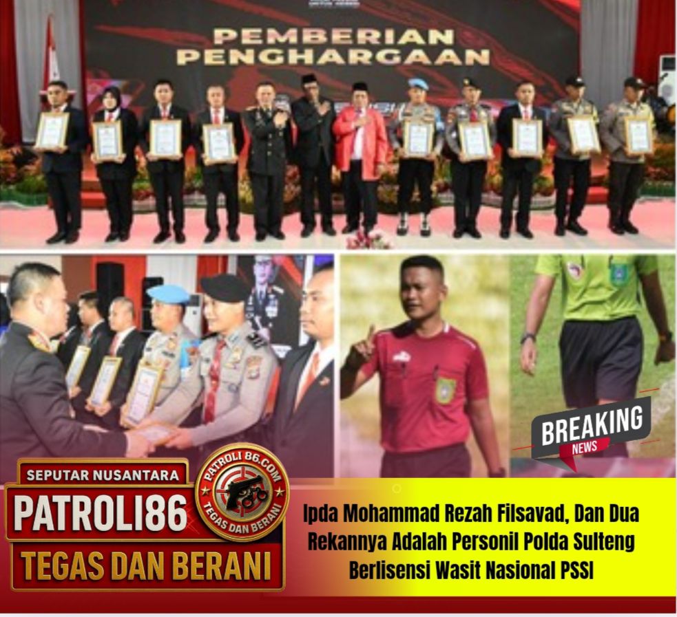 Tiga Personil Polda Sulteng (Sulawesi Tengah) Mendapat Lisensi Diantaranya Ipda Mohammad Rezah Filsavad Wasit Nasional PSSI, yang sehari – hari Berdinas di Spripim Polda Sulteng, Bripka Arafandi Abdullah Wasit Nasional PSS Polres Banggai dan Ipda Didik Pradinta Putra, S.A.P, Wasit Nasional PSSI Polres Buol.