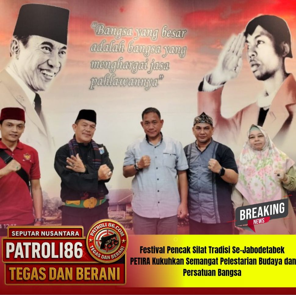 Jakarta — patroli86.com ,, 13 November 2025 Dalam semangat menjaga dan mengembangkan warisan budaya bangsa, Pesilat Tradisi Indonesia Raya (PETIRA) akan menggelar Festival Pencak Silat Tradisi Se–Jabodetabek (Piala Menteri Kebudayaan Republik Indonesia). Kegiatan ini mengusung tema “Pencak Silat Tradisi, Merajut Budaya Nusantara, Berbalut Bhinneka Tunggal Ika.”