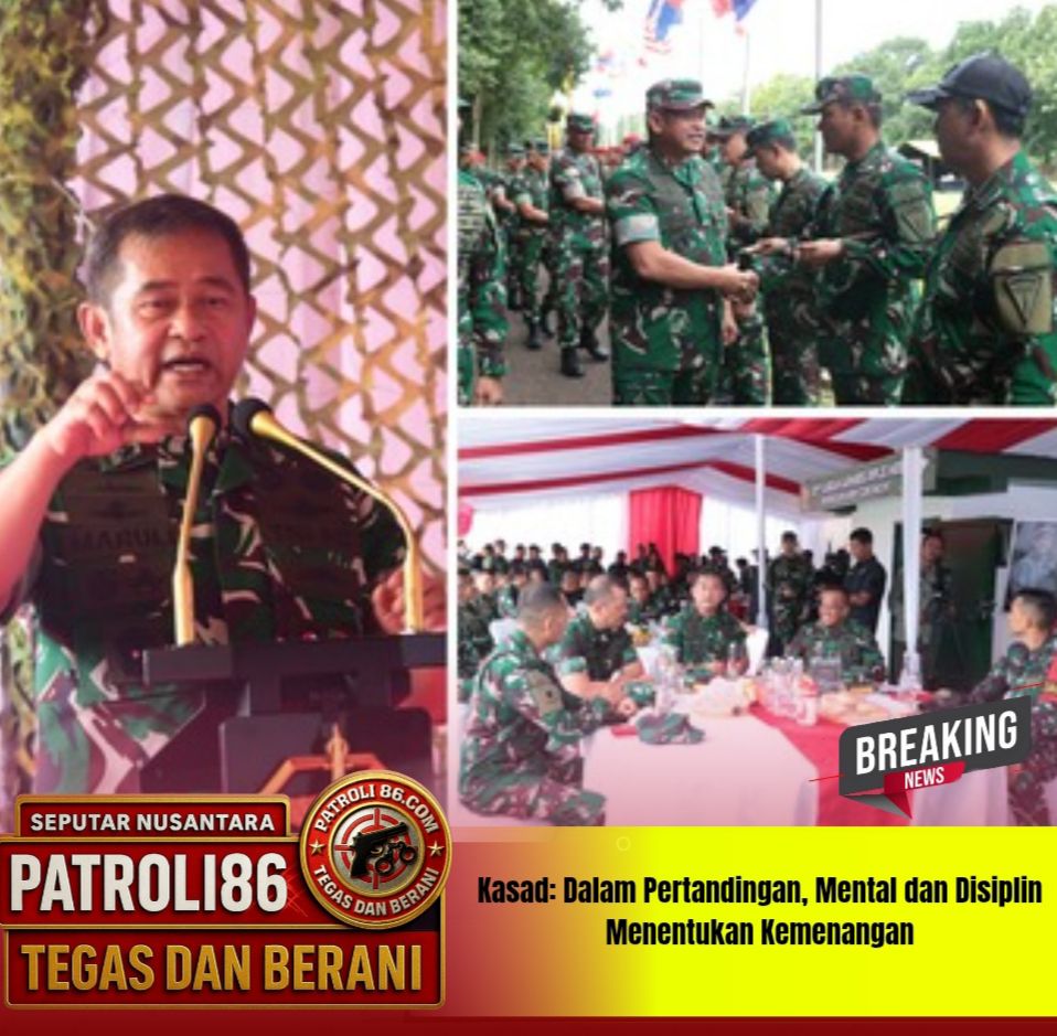 JAKARTA, – PATROLI86.COM ,, Kepala Staf Angkatan Darat (Kasad) Jenderal TNI Maruli Simanjuntak, M.Sc., menegaskan bahwa dalam setiap pertandingan, faktor terpenting yang harus dimiliki seorang atlet adalah mental bertanding yang kuat serta disiplin tinggi.