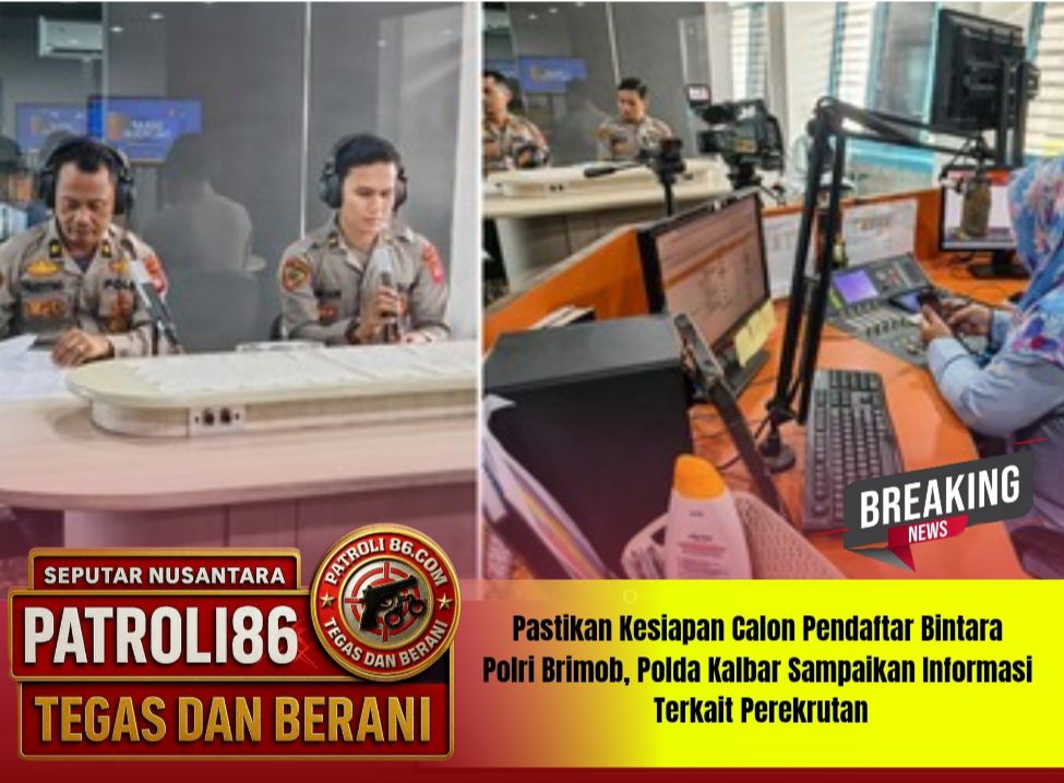 *Pontianak* Polda Kalbar — patroli 86.com.Guna memastikan kesiapan Calon Pendaftar Bintara Polri Brimob, Polda Kalbar sampaikan informasi terkait rekrutmen kepada Masyarakat melalui Dialog Interaktif, Bertempat di Stasiun Radio Republik Indonesia. (Rabu/12/11/2025)