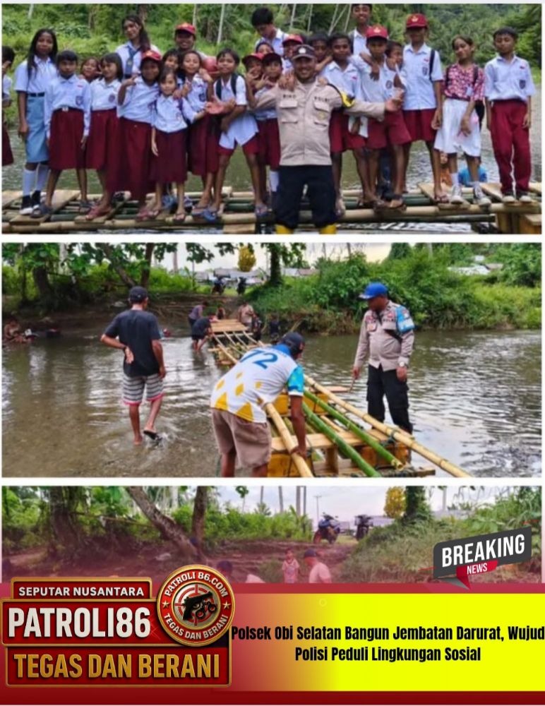 Sebagai wujud kepedulian nyata terhadap masyarakat pedesaan, Polsek Obi Selatan Polres Halmahera Selatan melaksanakan program Populis (Polisi Peduli Lingkungan Sosial) dengan membantu warga membangun jembatan darurat di Desa Bobo, Kecamatan Obi Selatan, pada Selasa (11/11/2025).