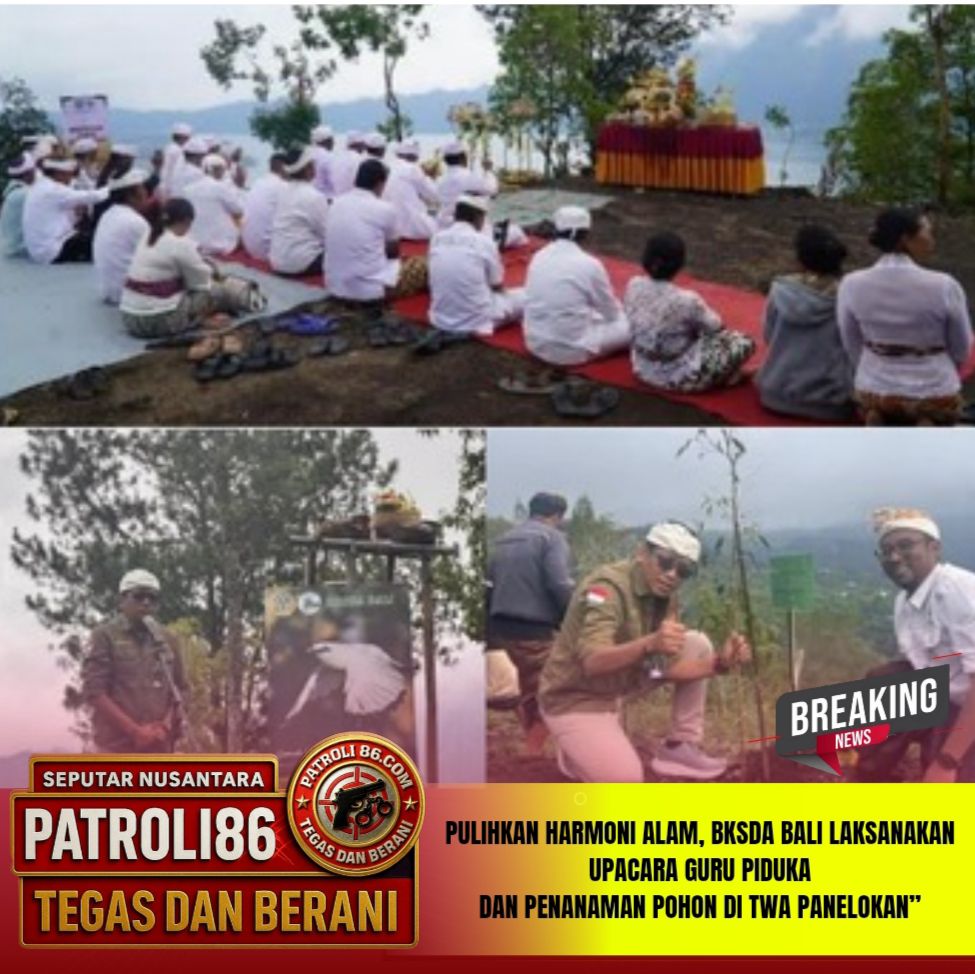 Bangli,, patroli86.com ,,13 November 2025 – Balai Konservasi Sumber Daya Alam (BKSDA) Bali melaksanakan Upacara Guru Piduka dan Penanaman Pohon di Taman Wisata Alam (TWA) Panelokan, Kecamatan Kintamani, Kabupaten Bangli. Kegiatan ini menjadi simbol penghormatan terhadap alam serta langkah nyata dalam upaya pemulihan ekosistem, dengan semangat kolaborasi antara pemerintah, masyarakat adat, dan generasi muda Kader Konservasi BKSDA Bali. Pelaksanaan kegiatan ini juga menandai tahap akhir dari proses penyelesaian pembongkaran bangunan kedai di kawasan TWA Panelokan dan bentuk komitmen bersama untuk mengembalikan fungsi kawasan.