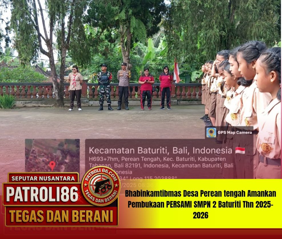 Seizin Kapolres Tabanan AKBP I Putu Bayu Pati, S.I.K., M.H. – Melalui Kapolsek Baturiti Kompol I Komang Agus Sudarsana, S.E. disampaikan bahwa kehadiran Bhabinkamtibmas dan Babinsa dalam kegiatan tersebut bertujuan untuk memberikan rasa aman serta memastikan seluruh kegiatan berjalan dengan tertib dan lancar. Selain itu, kegiatan PERSAMI ini diharapkan mampu membentuk karakter siswa agar taat pada aturan sekolah, memiliki loyalitas terhadap guru, teman, serta menanamkan sikap hormat kepada orang tua.