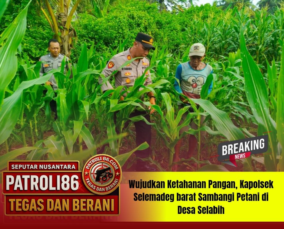 Suraberata, Kamis 22 Januari 2026 Kapolsek Selemadeg barat, AKP I Kadek Darmawan S.Sos., menunjukkan komitmen nyata dalam mendukung program ketahanan pangan nasional dengan melaksanakan patroli dialogis langsung di lahan pertanian Desa Selabih, Kecamatan Selemadeg barat. Dalam kegiatan yang berlangsung humanis tersebut, Kapolsek menyempatkan diri meninjau hamparan tanaman jagung dan berinteraksi langsung dengan para petani yang sedang bekerja.