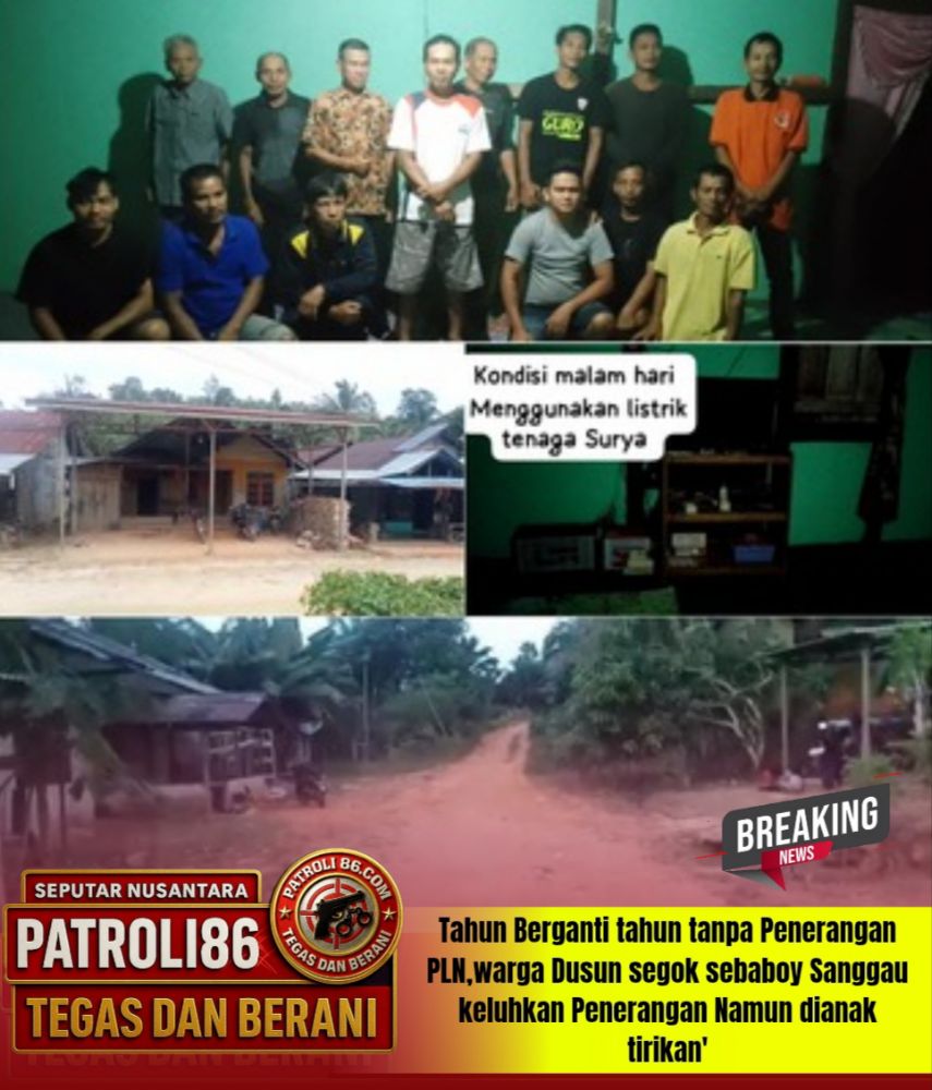 Sanggau Kalbar – patroli 86.com. 26 Januari 2026, tahun berganti tahun tanpa Penerangan PLN warga dusun segok sebaboy Sanggau keluhkan Penerangan Namun selalu dianak tirikan’ dan kurangnya perhatian serius dari pemerintah daerah, Sanggau Kalimantan Barat, warga dusun segok sebaboy kabupaten Sanggau mengaku telah lama dirasakan dianak tirikan dan kurang mendapatkan perhatian dari pihak terkait.