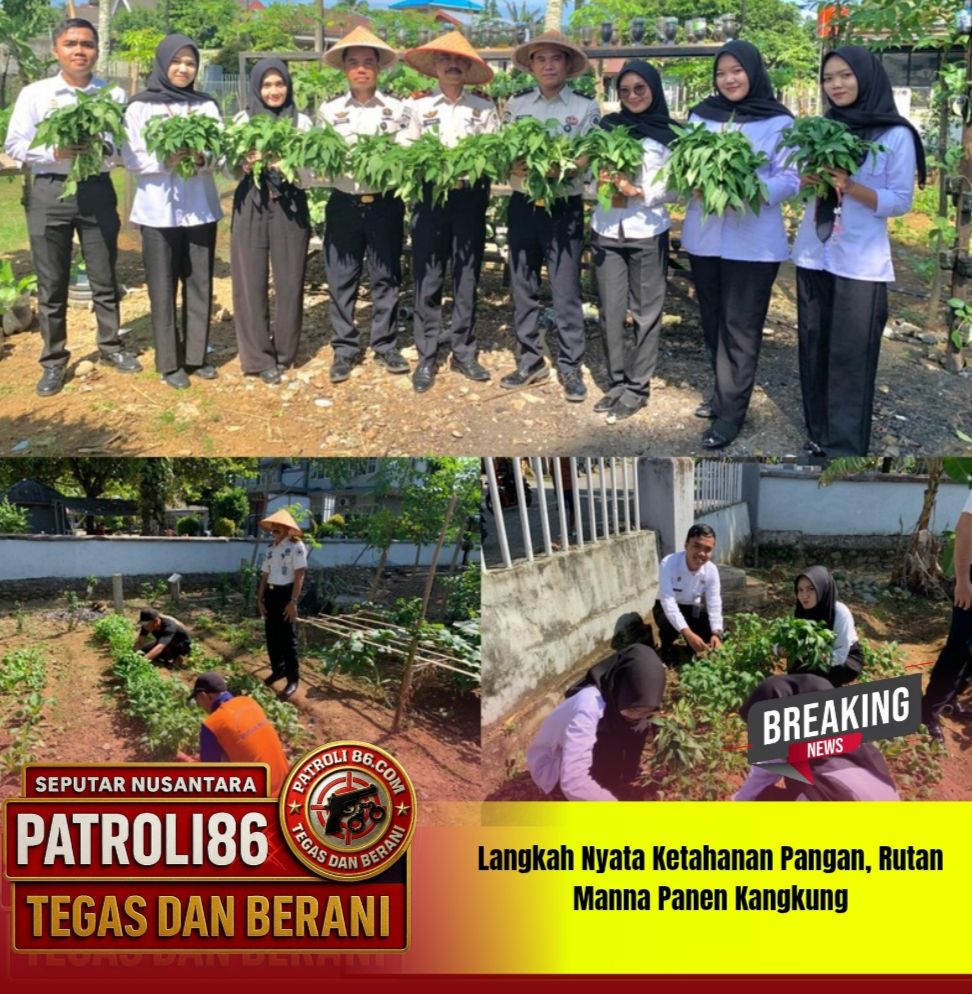 Manna – PATROLI 86 COMRumah Tahanan Negara Kelas IIB Manna melaksanakan kegiatan panen kangkung di lahan ketahanan pangan lingkungan luar Rutan Manna, Selasa (27/1). Kegiatan ini dipimpin langsung oleh Kepala Rutan Kelas IIB Manna, Muhamad Nur, serta diikuti oleh Kasubsi Pengelolaan, staf pengelolaan, CPNS, peserta magang, dan Warga Binaan Pemasyarakatan (WBP).
