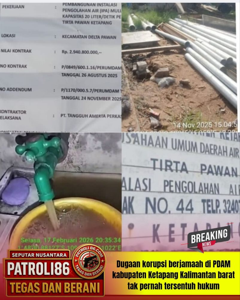 Patroli86.com ,, Padahal dugaan korupsi berjamaah di PDAM Ketapang 2025 lebih kuat sebesar Rp.2.940.800.000 dilaksanakan PT.TANGGUNG AMERTA PERKASA