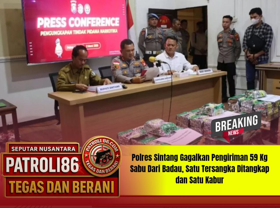 Polres Sintang melalui Satresnarkoba berhasil mengungkap kasus tindak pidana narkotika dengan barang bukti sabu seberat 59,85 kilogram pada Minggu 1 Maret 2026.