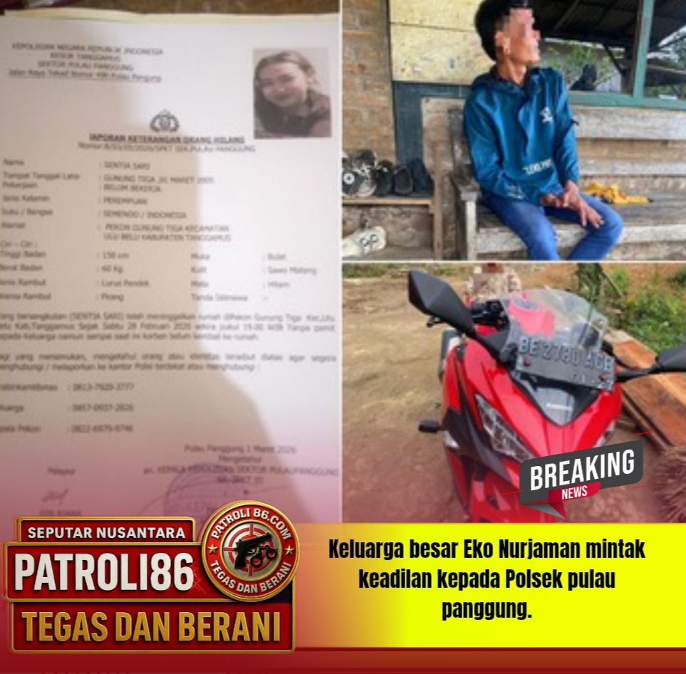 Eko Nurjaman, ayah kandung Sentia Sari, meminta keadilan hukum kepada Kapolsek Pulau Panggung untuk segera menetapkan Afrijal, putra dari A Bahri, sebagai tersangka. Afrijal diduga membawa kabur Sentia Sari dari rumah tanpa izin pada Sabtu, 28 Februari 2026.
