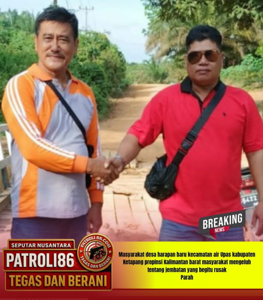 Ketapang – patroli 86.com ,, Warga Desa Harapan Baru, Kecamatan Air Upas, Kabupaten Ketapang, berharap pemerintah daerah segera mengalokasikan anggaran untuk memperbaiki jembatan yang saat ini kondisinya sudah tidak layak dilalui.
