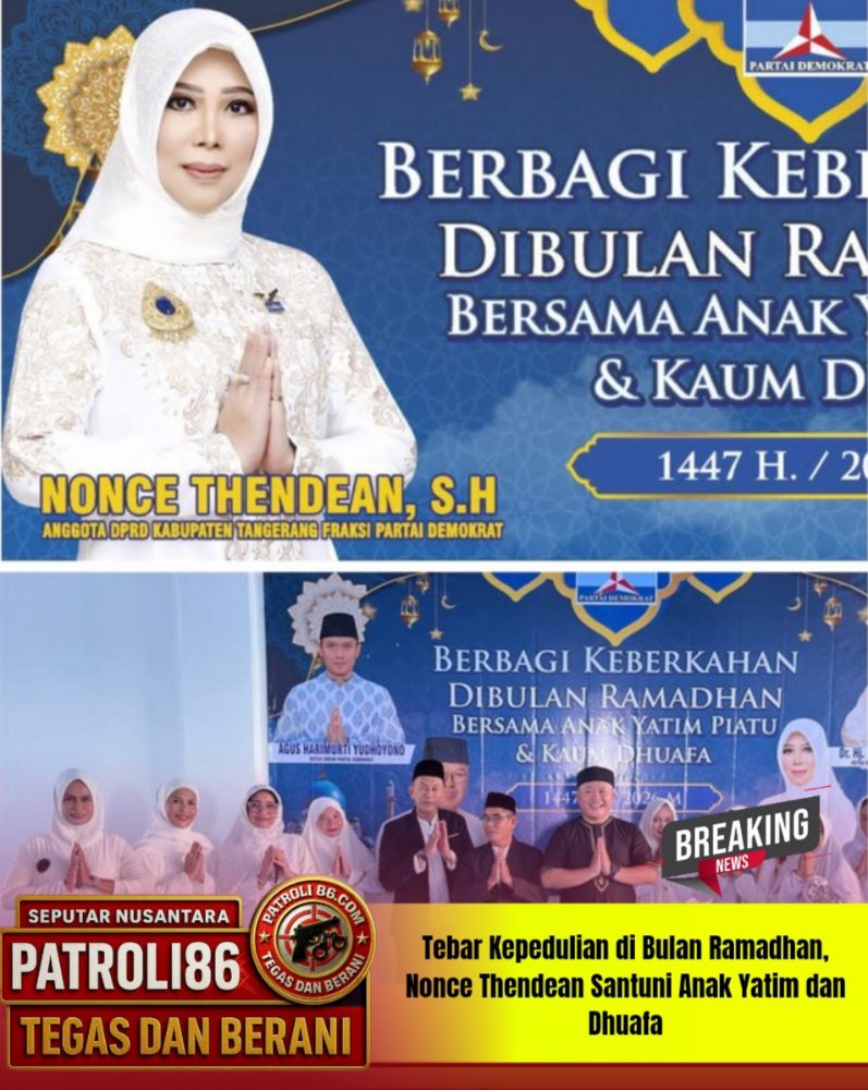 Momentum bulan suci Ramadhan dimanfaatkan Anggota DPRD Kabupaten Tangerang dari Fraksi Partai Demokrat, Nonce Thendean,SH untuk menebar kepedulian kepada masyarakat melalui kegiatan santunan anak yatim piatu dan kaum dhuafa yang dirangkai dengan buka puasa bersama.