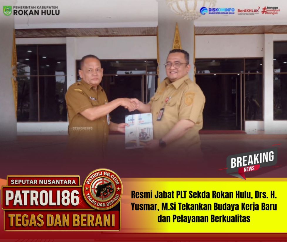 Rokan Hulu – patroli 86.com ,, Pemerintah Kabupaten Rokan Hulu menggelar Apel Bersama yang dirangkaikan dengan Penandatanganan Berita Acara Serah Terima Jabatan (Sertijab) Sekretaris Daerah (Sekda) Kabupaten Rokan Hulu dan Penyerahan buku memori Kerja dari Muhammad Zaki, S.STP, M.Si kepada Drs. H. Yusmar, M.Si yang kini resmi menjabat sebagai Pelaksana Tugas (PLT) Sekda, di halaman Kantor Bupati Rokan Hulu, Senin (6/4/2026).