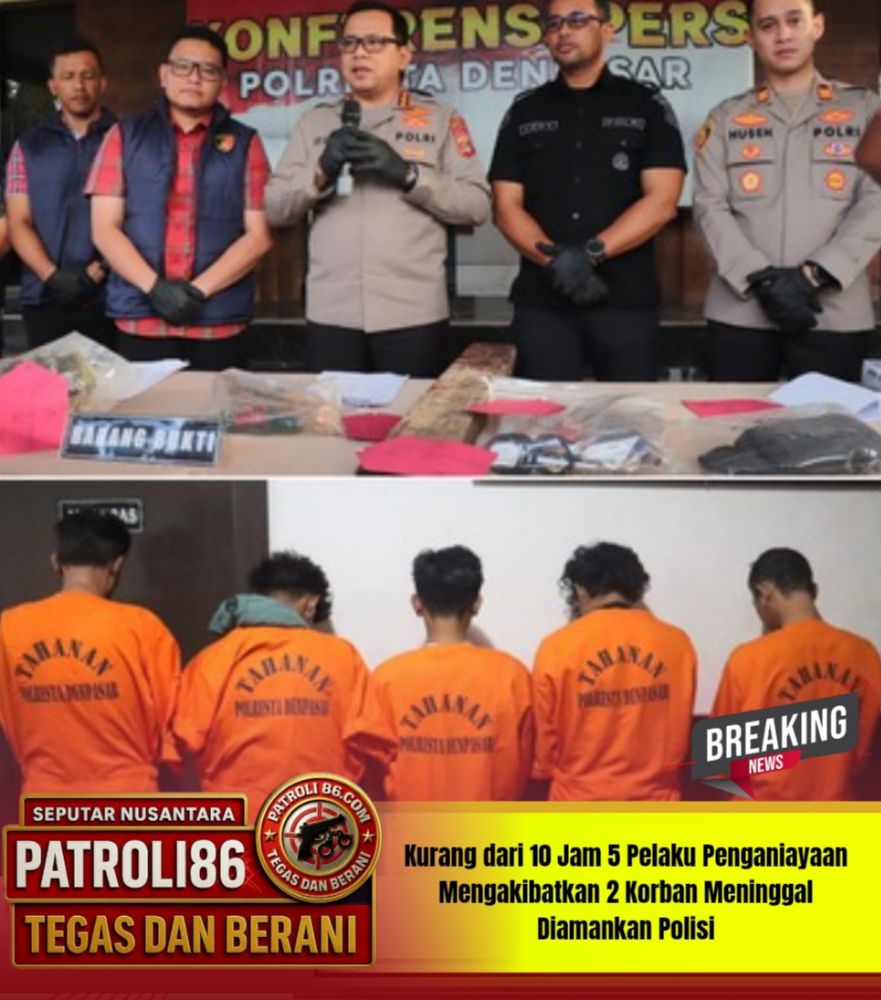 Denpasar – patroli 86.com ,, Aparat gabungan dari Unit Reskrim Polsek Kawasan Pelabuhan Benoa yang dibackup Jatanras Polda Bali dan Satreskrim Polresta Denpasar berhasil mengungkap kasus penganiayaan berat yang mengakibatkan dua orang meninggal dunia dalam waktu kurang dari 10 jam sejak kejadian. Peristiwa tragis tersebut terjadi pada Jumat, 10 April 2026 sekitar pukul 04.30 WITA di kawasan Pelabuhan Benoa, Denpasar.