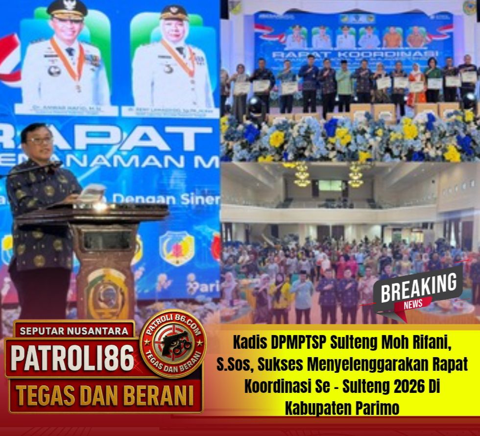 DPMPTSP Provinsi Sulawesi Tengah Sukses menyelenggarakan rapat koordinasi Se – Sulawesi Tengah Tahun 2026 di Kabupaten Parigi Moutong yang di buka Gubernur Sulawesi Tengah di Wakili oleh Asisten Pemerintahan dan Kesra Sekda Prov. Sulteng, Dr.Farid Yotolembah, S.Sos. M.Si.