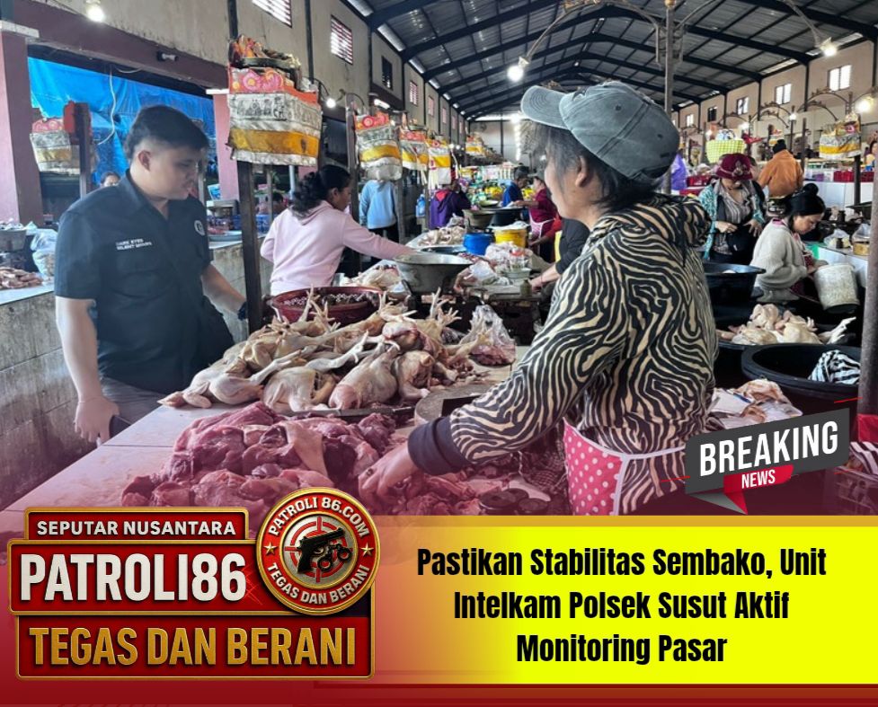 Bangli,, patroli 86.com ,, Rabu (15/4/2026) pukul 07.00–08.30 WITA — Dalam rangka menjaga stabilitas harga serta memastikan ketersediaan bahan pokok di masyarakat, Unit Intelkam Polsek Susut melaksanakan kegiatan pemantauan dan monitoring di Pasar Kayuambua, Desa Tiga, Kecamatan Susut, Kabupaten Bangli.