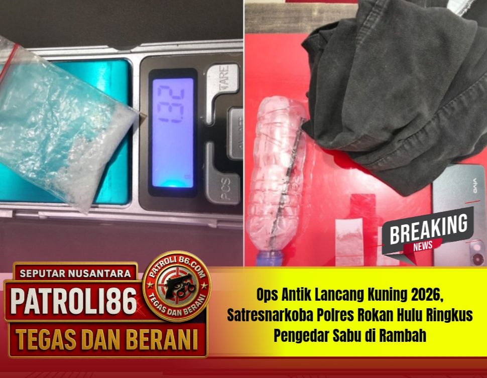 ROKAN HULU — patroli 86.com ,, Satuan Reserse Narkoba Polres Rokan Hulu kembali mengungkap kasus peredaran narkotika jenis sabu dalam rangka Operasi Antik Lancang Kuning (LK) 2026. Seorang pria yang diduga sebagai pengedar berhasil diamankan bersama sejumlah barang bukti di wilayah Kecamatan Rambah, Jumat (17/4/2026).