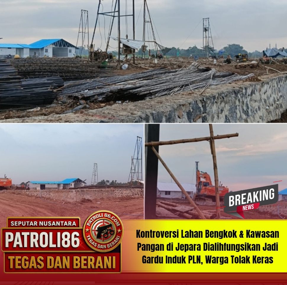 JEPARA – patroli 86.com ,, Diduga Sebuah proyek pembangunan Gardu Induk (GI) milik PT PLN di wilayah Desa Tunggul Pandean, Kecamatan Nalumsari, Kabupaten Jepara, kini menjadi sorotan tajam dan memicu pertanyaan besar di kalangan masyarakat. Pasalnya, lahan yang kini berdiri bangunan bertegangan tinggi tersebut diduga kuat merupakan tanah bengkok milik desa yang secara status lahan masuk dalam kategori kawasan tanaman pangan.