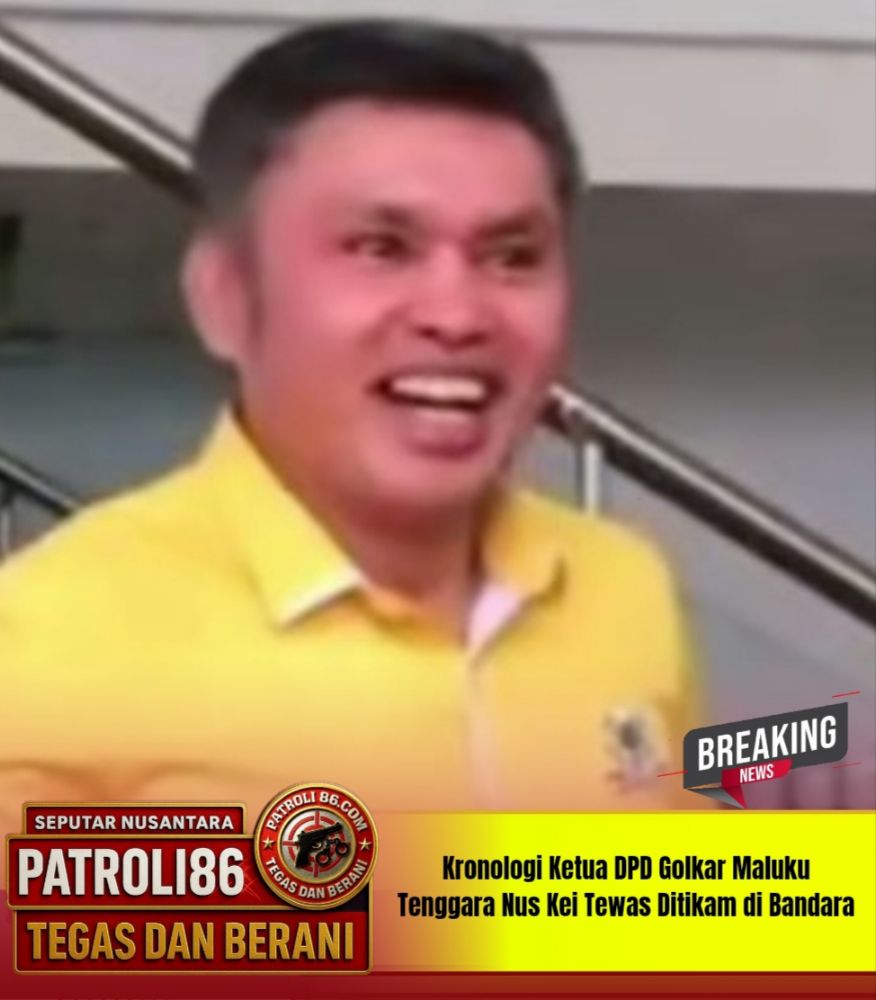 Ketua DPD Partai Golkar Kabupaten Maluku Tenggara, Agrapinus Rumatora alias Nus Kei, tewas setelah ditikam di Bandara Karel Sadsuitubun, Langgur, Minggu (19/4/2026).