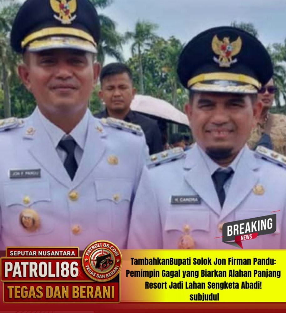 Patroli 86.com ,, Sungguh ironis! Di tengah gemerlap janji kampanye, Bupati Solok Jon Firman Pandu justru jadi biang keladi kekacauan Alahan Panjang Resort. Persoalan sengketa antara Pemkab Solok dan Kaum Malyu Kopong yang seharusnya selesai dalam hitungan minggu jika ikuti aturan hukum yang jelas ,Jon firman pandu malah menggantung permasalahan yang sudah bertahun-tahun seperti mayat hidup.