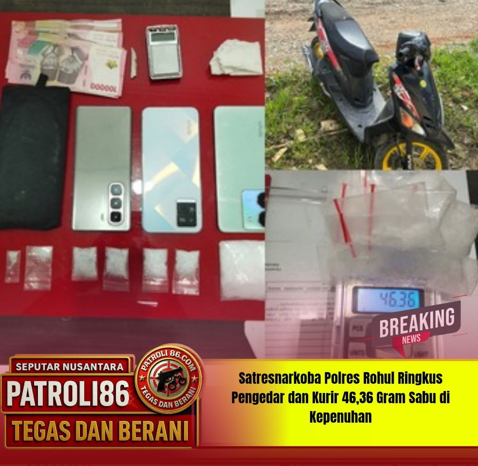 ROKAN HULU — patroli 86.com ,,Satuan Reserse Narkoba Polres Rokan Hulu kembali mengungkap kasus peredaran narkotika jenis sabu dalam rangka Operasi Antik Lancang Kuning (LK) 2026. Tiga orang pelaku berhasil diamankan dengan barang bukti sabu seberat 46,36 gram di Desa Kepenuhan Baru, Kecamatan Kepenuhan, Kamis (23/4/2026) dini hari.