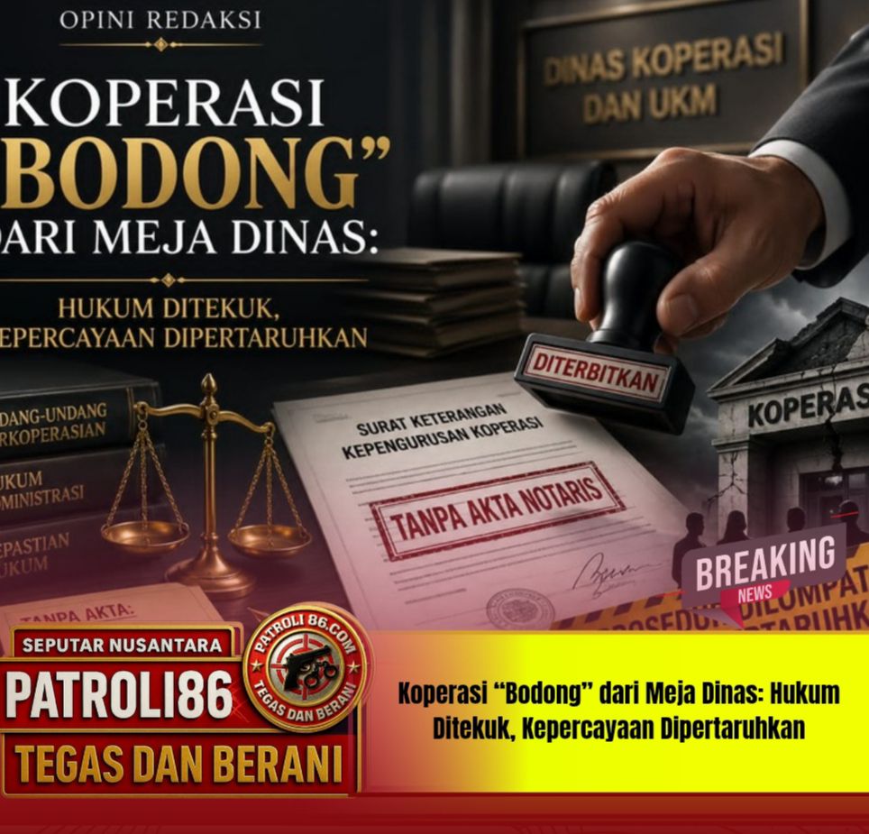 Ketapang– kalbar ,, patroli 86.com ,, Sabtu, 25 April 2026, Keganjilan dalam tata kelola koperasi kembali mencuat. Penerbitan Surat Keterangan Kepengurusan tanpa dasar akta notaris bukan sekadar kekeliruan administratif—ini adalah bentuk pelanggaran prosedur yang serius dan berpotensi melanggar hukum.