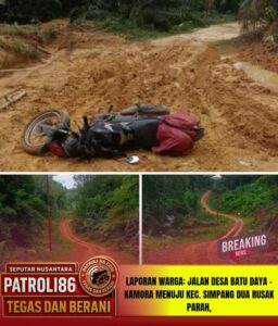 Perbaiki jalan secara gotong royong* karena truk CPO 20 ton milik PT ikut lewat tiap hari & jadi penyebab utama rusak.