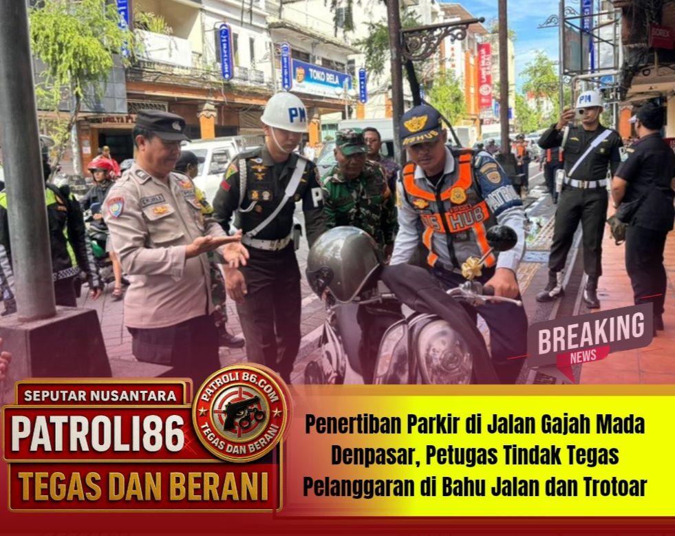 Denpasar – patroli 86.com ,, Dalam upaya menciptakan ketertiban dan kelancaran arus lalu lintas, Satuan Lalu Lintas Polresta Denpasar bersama Instansi terkait TNI, Satpol PP, Dinas Perhubungan, serta PD Parkir Kota Denpasar mengelar Penertiban parkir di sepanjang Jalan Gajah Mada, Denpasar, pada Selasa (28/4/2026) pagi.