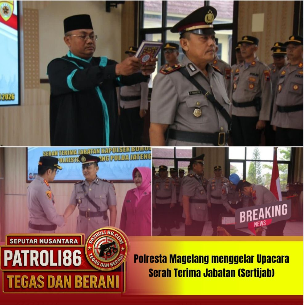 Polresta Magelang – patroli 86.com ,, Polda Jateng- Polresta Magelang menggelar Upacara Serah Terima Jabatan (Sertijab) Kapolsek Borobudur yang berlangsung di Aula Polresta Magelang, Selasa (28/4/2026) pagi. Kegiatan berlangsung khidmat dan diikuti jajaran pejabat utama, kapolsek, serta pengurus Bhayangkari.