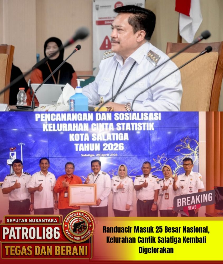 SALATIGA – patroli 86.com ,, Wali Kota Salatiga, dr. Robby Hernawan, Sp.OG., secara resmi mencanangkan program Kelurahan Cinta Statistik (Kelurahan Cantik) Tahun 2026. Acara yang digelar di Ruang Kaloka, Gedung Setda, Rabu (29/04/2026) ini dirangkaikan dengan penandatanganan komitmen bersama untuk memperkuat pembangunan berbasis data yang akurat dan faktual.